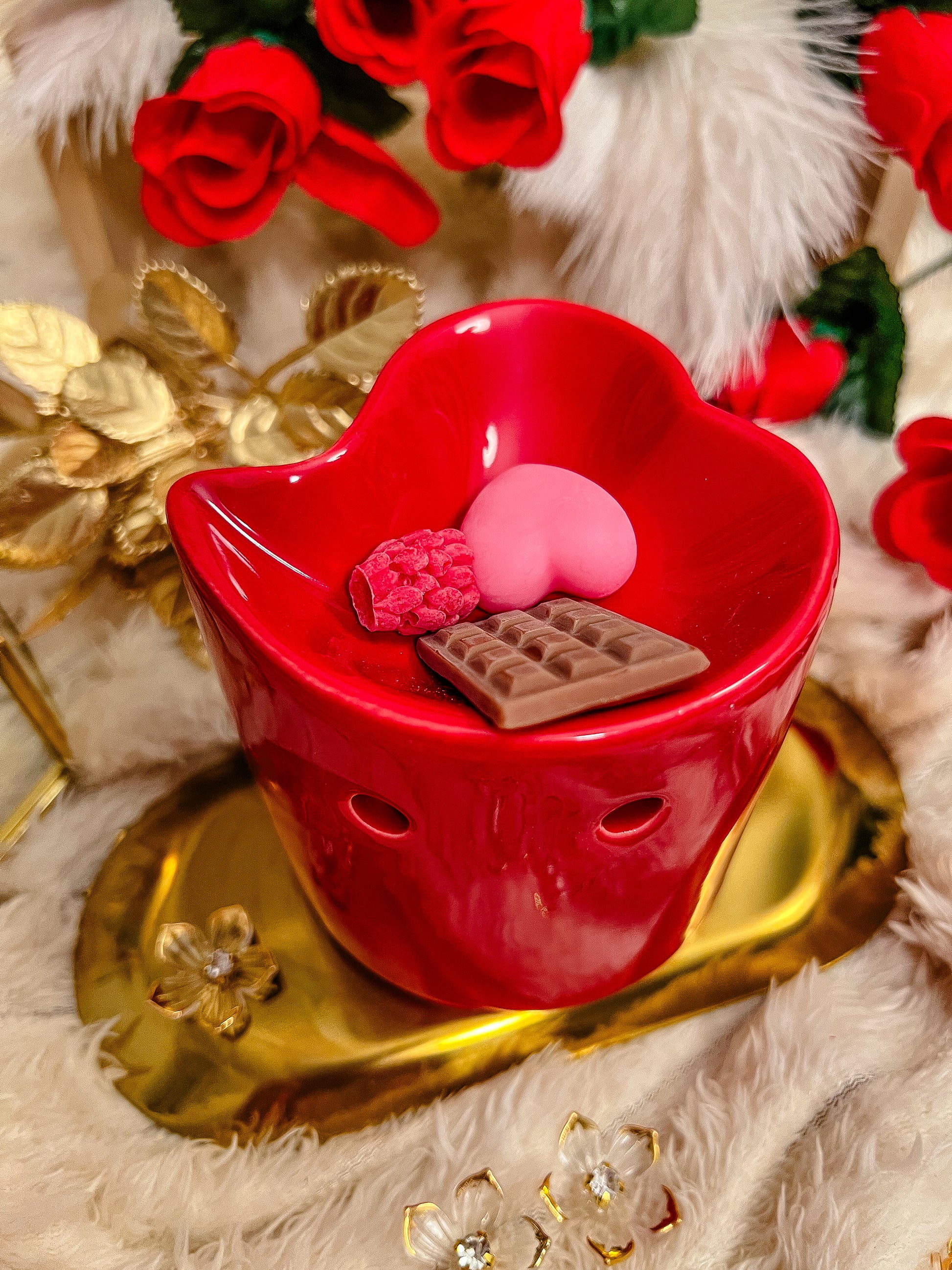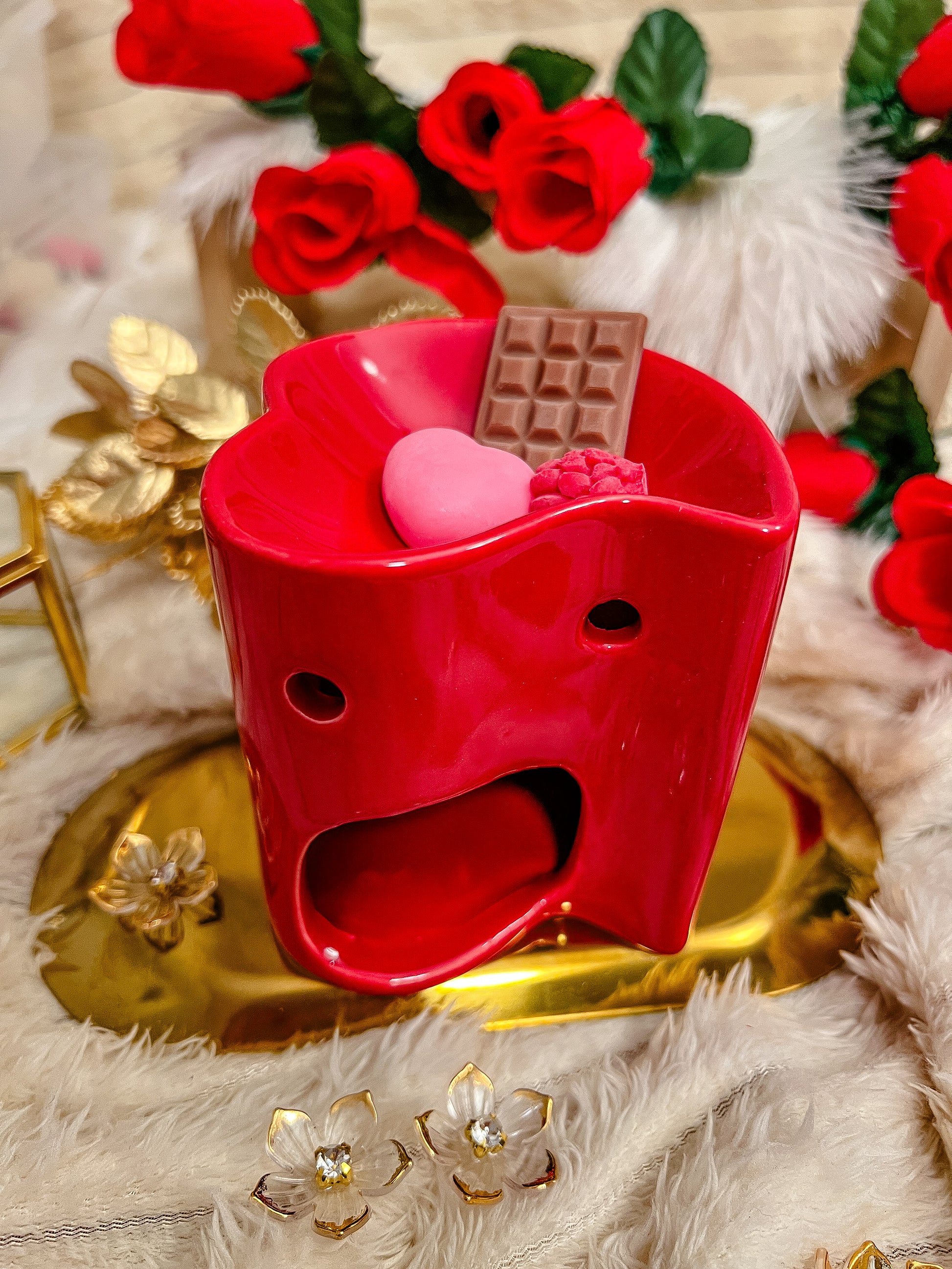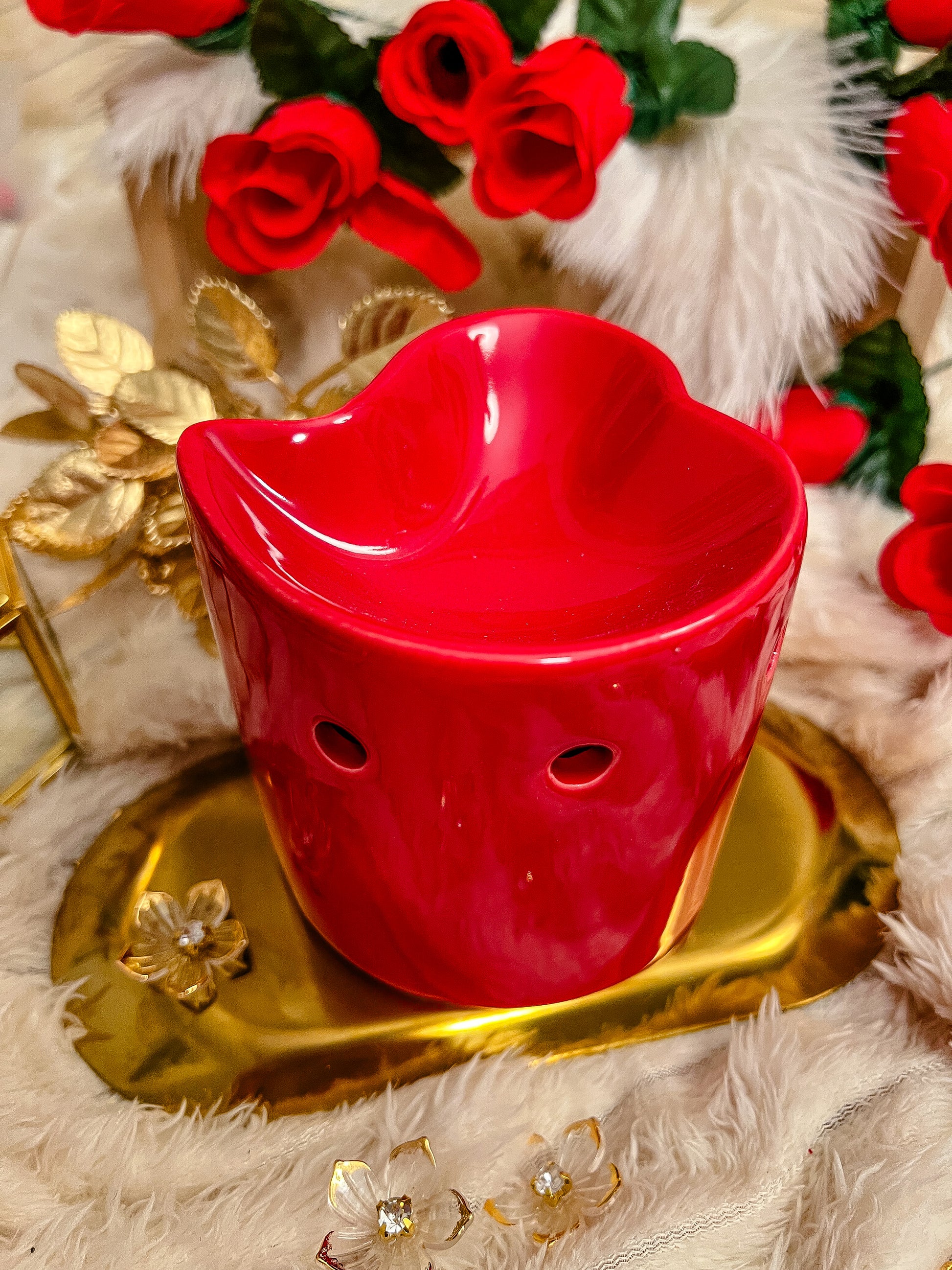 Ajoutez une touche d’amour avec ce brûleur de fondants Red Love à la fois fun et romantique. Sa finition rouge éclatante et son design inspiré des cœurs apportent immédiatement du charme tout en diffusant vos parfums sucrés préférés.