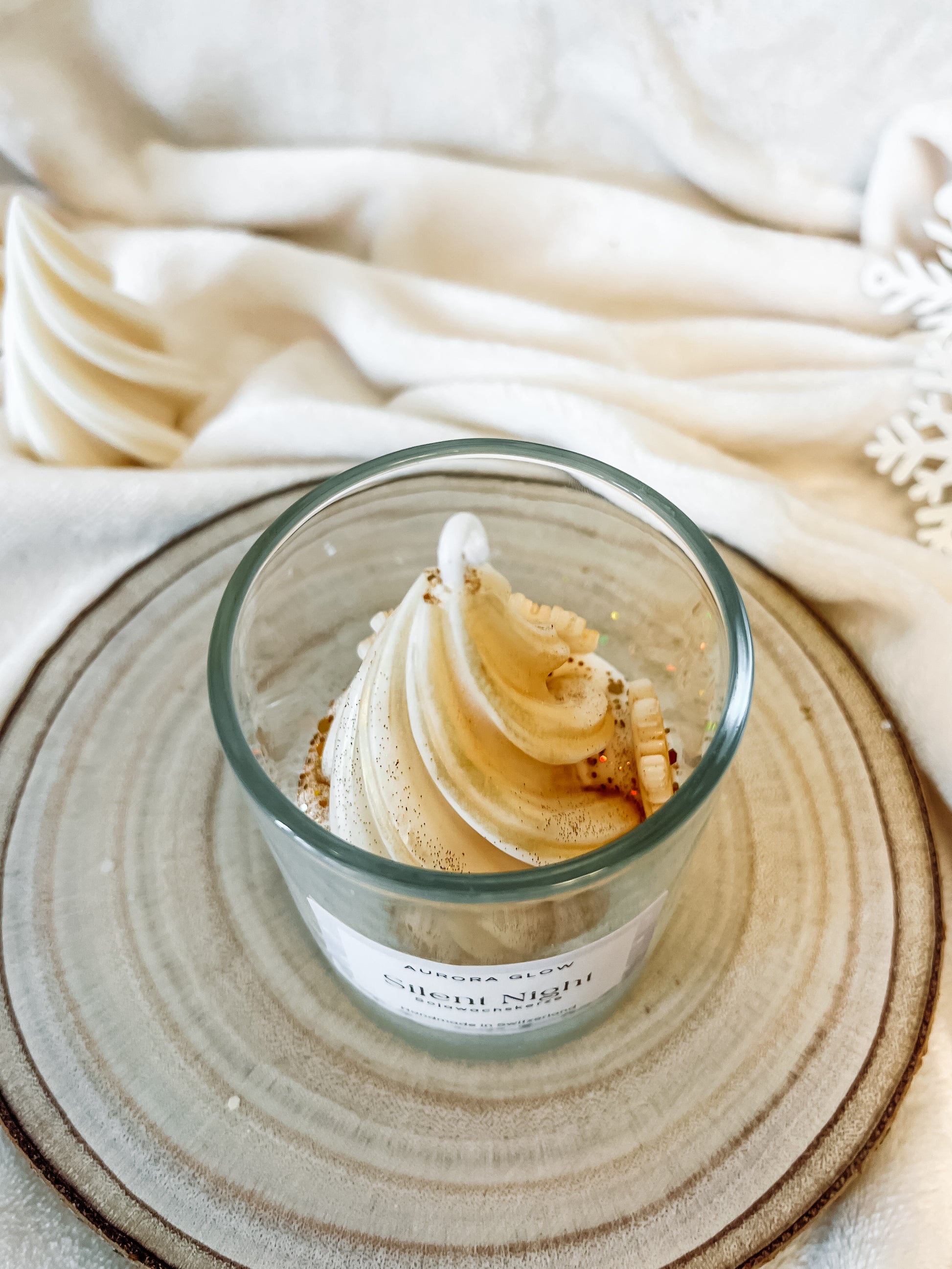 The crisp scent of pine drifts through soft wax, crowned with a golden-touched Christmas tree for a quiet glow of holiday elegance.